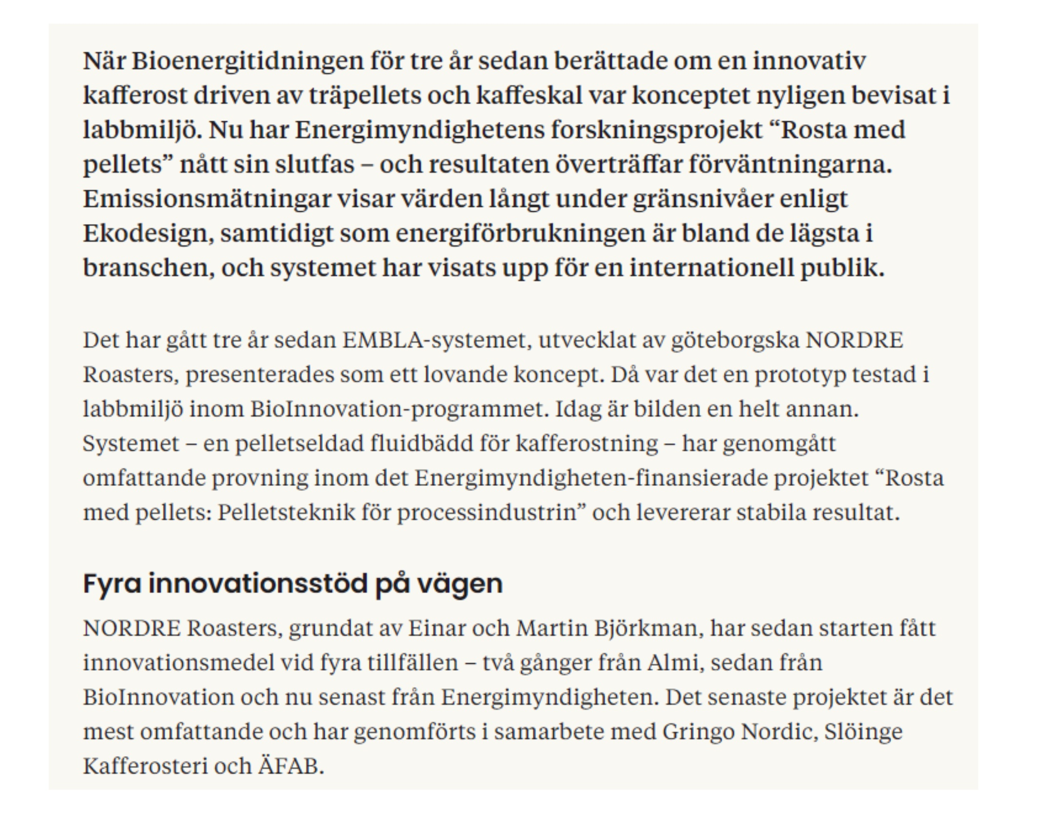 Vi har i ett par år haft ett roligt sidoprojekt. Det är härligt med nytänk och smata inovationer så det har varit ett rent nöje att följa utveckligen av Nordre Roasters med Martin och Einar i spetsen.